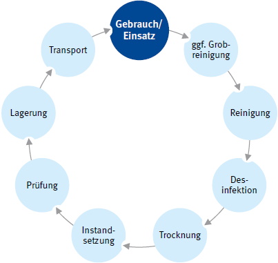3) Sollte die Sichtprüfung Mängel bezüglich des Reinigungszustandes aufweisen, ist eine Reinigung und ggf. Desinfektion durchzuführen.