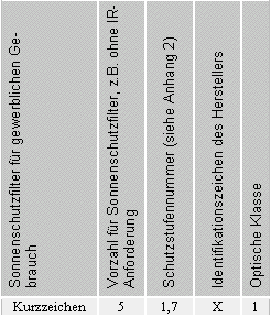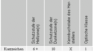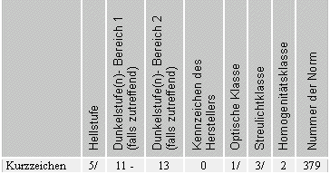 An die Stelle der einzigen Schutzstufennummer treten die Schutzstufennummern der Hell- und Dunkelstufe(n) durch ein + - Zeichen getrennt, z.B. 6 + 10. |