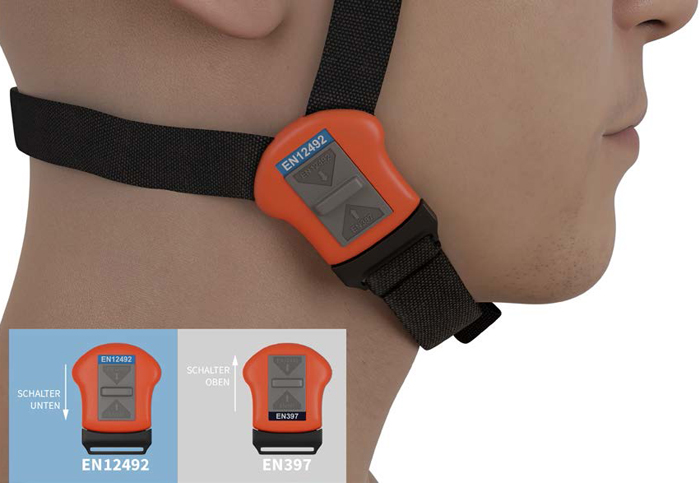 Abb. 21 4-Punkt-Kinnriemen mit Umschalt-Funktion zum Wechseln zwischen den Anforderungen der Normen EN 397 und EN 12492