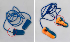 Abb. 8 Gehörschutzstöpsel mit Metallösen (rote Markierung) zur Detektierbarkeit