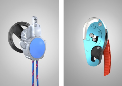 Abb. 15 Abseilgeräte (links Typ 1, rechts Typ 2 – vorwiegend Einsatz bei seilunterstützten Zugangs- und Positionierungsverfahren)