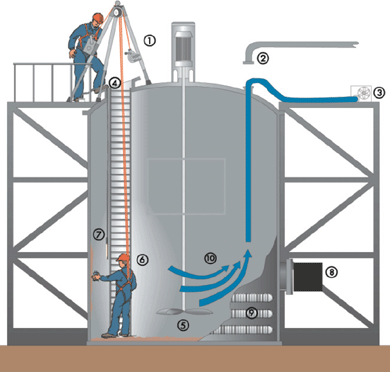 ![]() Abb. 15 Mögliche Gefährdungen beim Arbeiten in Behältern und engen Räumen (beispielhaft) |