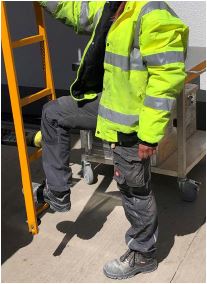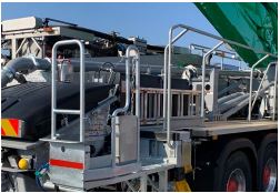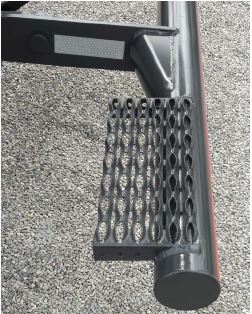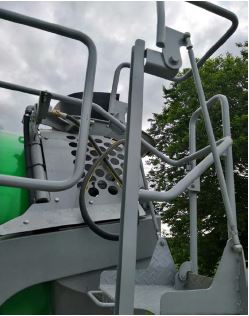 - Tritte und Arbeitspodeste rutschhemmend und ausreichend groß ausgeführt sind, z. B. auf dem Unterfahrschutz,