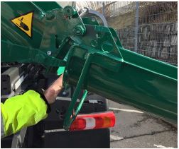 - darauf zu achten, dass sich keine Personen beim Verschwenken und beim Betrieb des Förderbandes im Gefahrbereich aufhalten;