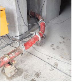 - dafür zu sorgen, dass Verstopfungen in Förderleitungen beim Anpumpen durch ausreichende Verwendung von Anpumphilfen, z. B. dünnflüssiges Wasser-Sand-Zement-Gemisch, sowie aushärtender Beton durch längere Pumppausen vermieden werden;