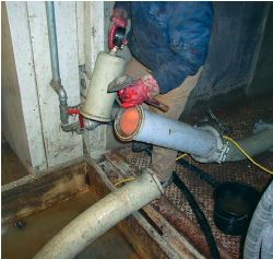 - insbesondere beim Reinigen von vertikalen Förderleitungen geeignete Reinigungsvorrichtungen einzusetzen, z. B. Auffangbehälter für Restbeton oder Verzweigungen der Reinigungsleitung mittels Rohrweiche;