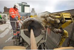 Um starke Staubentwicklungen zu vermeiden, kann eine häufigere Zwischenreinigung durch z. B. den Einsatz von automatischen Fahrmischertrommelreinigungssystemen mit Hochdruckwasser durchgeführt werden (s. Abbildung 42).