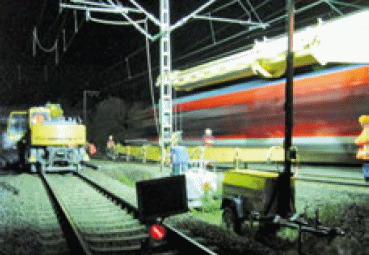 Für Gleisbauarbeiten nachts und im Tunnel muss eine ausreichende Beleuchtung vorgesehen werden: gemäß Technischer Regel für Arbeitsstätten ASR 3.4 (4/2011) [9] beträgt der Mindestwert der Beleuchtungsstärke für die Gleisbauarbeiten 50 lx.