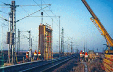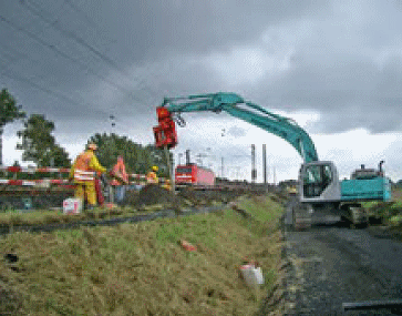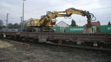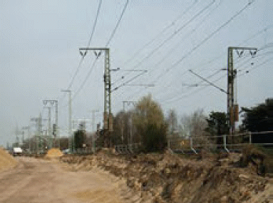 | Abb. 4-2: | Einsatz einer Ramme in der Nähe unter Spannung stehender Teile der Oberleitungsanlage. |