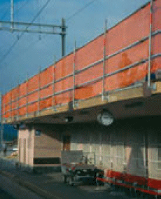| Abb. 4-9: | Die Abschrankung für Arbeiten auf einem Bahnsteigdach neben einer Oberleitung soll die Gefahr ausschließen, den Schutzabstand zur Oberleitung unbeabsichtigt zu unterschreiten. |
