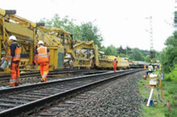 Bei Arbeiten mit Bettungsreinigungsmaschinen, Planumsverbesserungsmaschinen und Gleisumbauzügen muss die Fahrleitung ausgeschaltet und bahngeerdet/kurzgeschlossen sein. Es ist immer damit zu rechnen, dass Teile der Maschine arbeitsbedingt bestiegen werden müssen, z. B. zum
