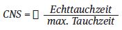 Der Wert für die CNS darf den Wert von 100 CNS % nicht überschreiten. Sollte der Wert über 100 CNS % liegen, ist der Tauchgang nicht durchführbar. Tabelle 5 Ermittlung der CNS in % anhand eines Beispiels