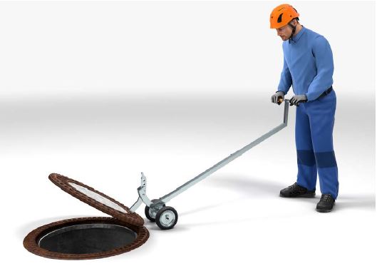 Für das Abheben von Schachtdeckeln hat die Unternehmerin bzw. der Unternehmer geeignete Schachtdeckelhebegeräte zur Verfügung zu stellen.
