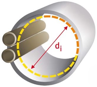 Bei der Bestimmung des lichten Durchmessers di (Lichtmaß) sind im Rohr befindliche Einbauteile, Versorgungsleitungen oder Ähnliches zu berücksichtigen.