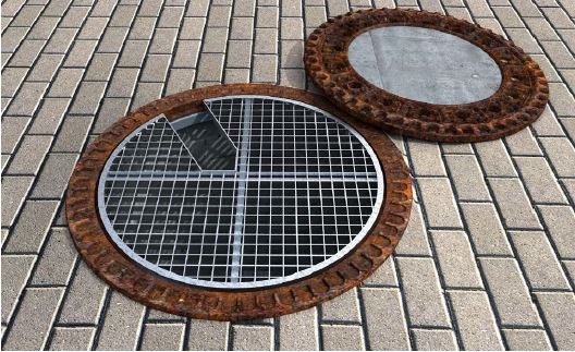 Abb. 13 Durch Abdeckroste gesicherte Schachtöffnung