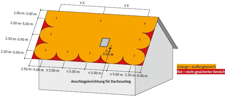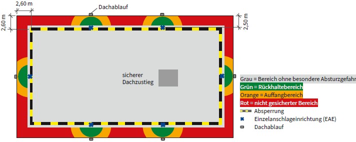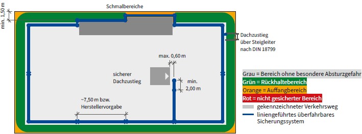 Bei Gebäuden mit technischen Anlagen und Absturzsicherungen sind diese so zu planen und abzustimmen, dass die Wirksamkeit bzw. Benutzbarkeit aller Systeme sichergestellt ist.