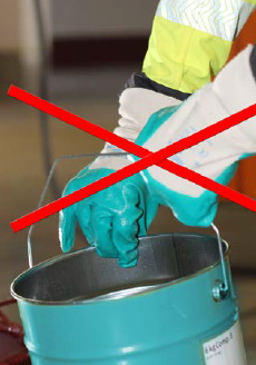 Schutzhandschuhe, die ausschließlich einen mechanischen Schutz bieten, wie Lederhandschuhe oder viele nitrilgetränkte Baumwollhandschuhe (s. Bild 8), bieten keinen Schutz gegenüber Epoxidharzbestandteilen.