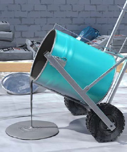 Vor Ort können die Materialien im Mischgefäß am besten mit Hilfe von Transportwagen zum Einbauort transportiert werden. Diese können auch zum Ausgießen des Produktes verwendet werden.