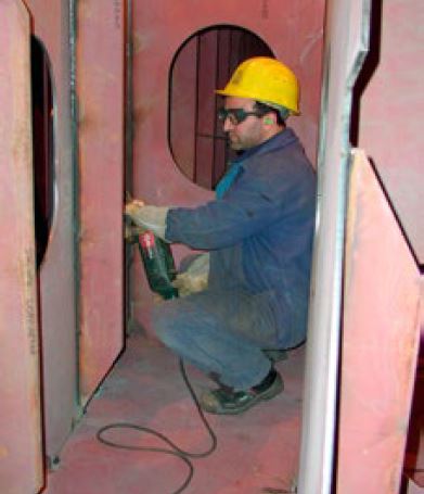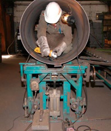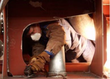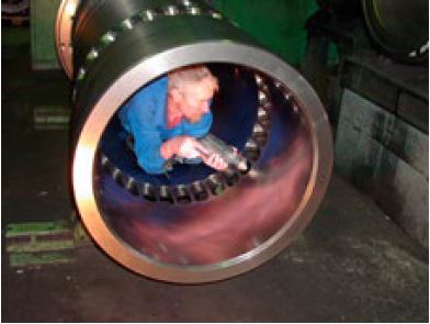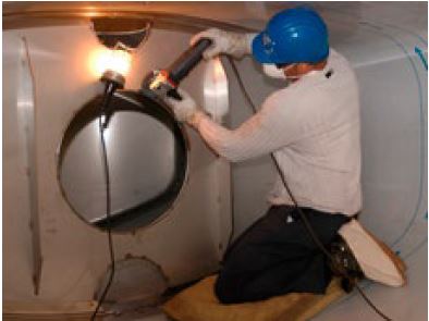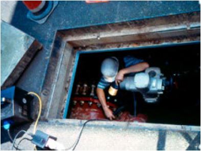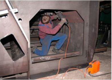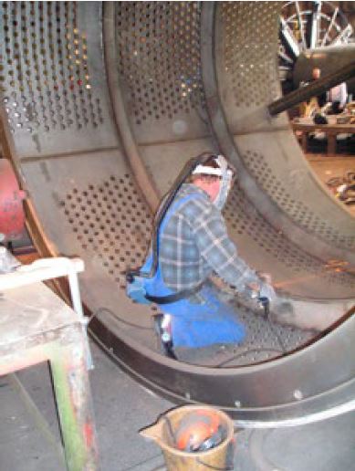 Trotz großem Behälterdurchmesser ist durch die eingenommene Körperhaltung eine begrenzte Bewegungsfreiheit gegeben. Im Fehlerfall kann eine gefährliche Körperdurchströmung (siehe Anhang 5) auftreten. Aufgrund der Zwangshaltung ist die Möglichkeit der Unterbrechung dieser Berührung eingeschränkt (vergleiche hierzu Bild A7.1 in Anhang 7).