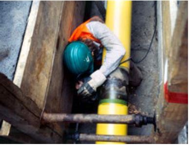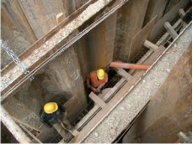 Bild A6.7: Rohrgraben mit Holzverbau: feuchtes Holz ist leitfähig.