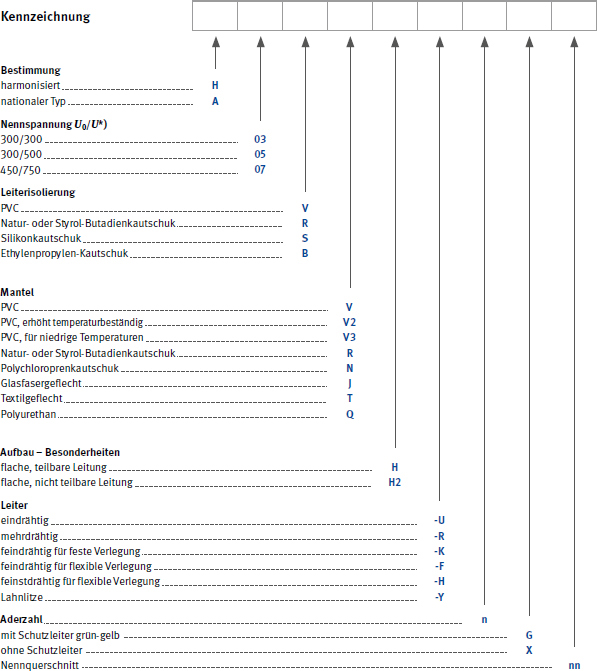 Tabelle 1 Kurzzeichen für harmonisierte Leitungen