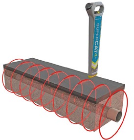 Wenn durch Leitungen Wechselstrom fließt, entsteht um diese Leitungen ein elektromagnetisches Wechselfeld. Das Kabelortungsgerät erkennt dieses Feld und zeigt es an.