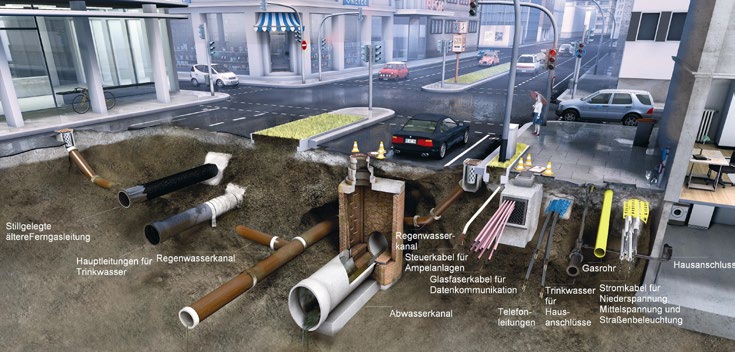 Erdverlegte Ver- und Entsorgungsleitungen (Kabel, Rohre, Kanäle etc.) sind sowohl in öffentlichen als auch in privaten Grundstücken verlegt. Die Verlegetiefe dieser Leitungen ist sehr unterschiedlich. Die Soll-Tiefe stimmt häufig nicht mit der Ist-Tiefe überein, weshalb die Leitungen manchmal nur wenige Zentimeter unter der Geländeoberfläche liegen. Oft ist ihre Lage nur ungefähr aufgezeichnet, manchmal auch unbekannt.