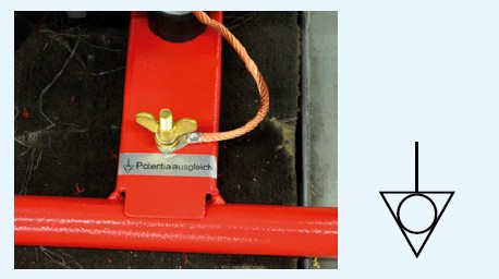 Diese dient entweder dem Zweck der Erdung oder der Herstellung eines Schutzpotentialausgleichs. Für eine eindeutige Identifizierung muss das zutreffende Symbol angebracht sein.