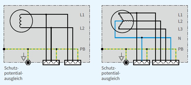 Abb. 4 Stromerzeuger ein- und dreiphasig ohne Erdungsanschluss mit Anschluss für Schutzpotentialausgleich (PB)