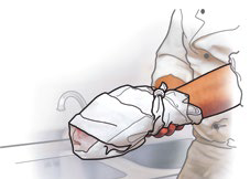 Wunden dürfen Sie nicht mit Ihren Händen berühren, da sie dadurch zusätzlich verunreinigt und infiziert würden.