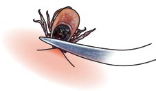 Fassen Sie die Zecke möglichst dicht über der Haut und ziehen Sie sie mit gleichmäßigem Zug heraus. Ein Quetschen der Zecke ist zu vermeiden. Es sollten keine Rückstände in der Wunde zurückbleiben. Markieren Sie die Einstichstelle.