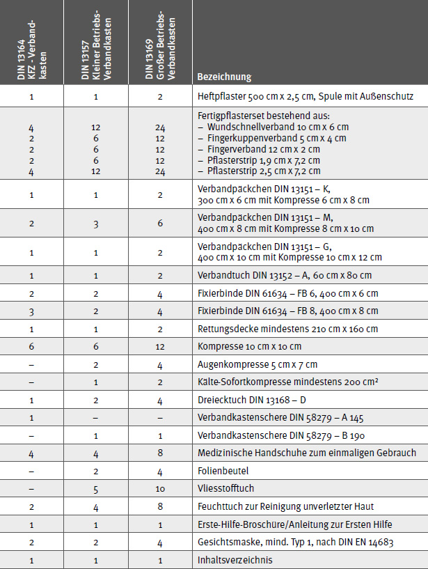 | KFZ-Verbandkasten | – DIN 13164 "Erste-Hilfe-Material – Verbandkasten B" |