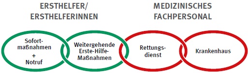 Für die Rettung der betroffenen Personen können Sekunden entscheidend sein. Deswegen muss die Versorgung unmittelbar am Ort des Geschehens durch Laien einsetzen und sich auf dem Transport ins Krankenhaus fortsetzen. Die Maßnahmen der Ersten Hilfe durch Laien, des Rettungsdienstes und des Krankenhauses bilden daher gleichsam eine rettende Kette. Diese ist allerdings nur so stark wie ihr schwächstes Glied.
