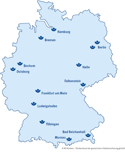 Die Standorte der Berufsgenossenschaftlichen Kliniken in Deutschland