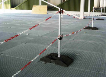 Abb. 4-8 Im sicheren Abstand zur Absturzkante (größer 2,0 m) abgesperrte Gitterrostbühne