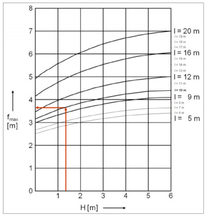 Aus dem Diagramm (DIN EN 1263-2:2015-03) ergibt sich eine max. Netzverformung