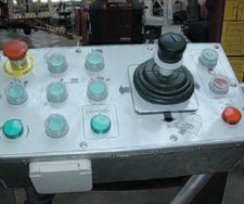Steuereinrichtungen von Hubarbeitsbühnen (Bild 3-6) befinden sich im Arbeitskorb und eventuell zusätzlich am Untergestell. Sie sind so ausgerüstet, dass sie nicht unbeabsichtigt betätigt werden können. Nach dem Loslassen gehen sie selbsttätig in die Nullstellung zurück. Die Steuerung des Hubwerkes erfolgt bei elektrischer Steuerung über Tastschalter und bei hydraulischer Steuerung über Handhebel. Eine Sicherheitselektronik überwacht bei neueren Konstruktionen das komplette Antriebssystem, um Überlastungen und Überschreitungen der zulässigen seitlichen Ausladung zu vermeiden.