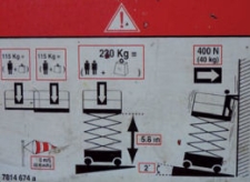 Fahrbare Hubarbeitsbühnen sind mit allen erforderlichen Angaben dauerhaft und gut sichtbar gekennzeichnet, die für ihre bestimmungsgemäße Verwendung notwendig sind.