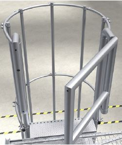 Bei Steigleitern mit oder ohne Rückenschutz muss bis zu einer Höhe von mindestens 1,10 m über der Austrittsstelle eine zweiseitige, gut umgreifbare Haltevorrichtung vorhanden sein. Dies ist z. B. bei Rohrdurchmessern zwischen 30 und 50 mm gegeben.