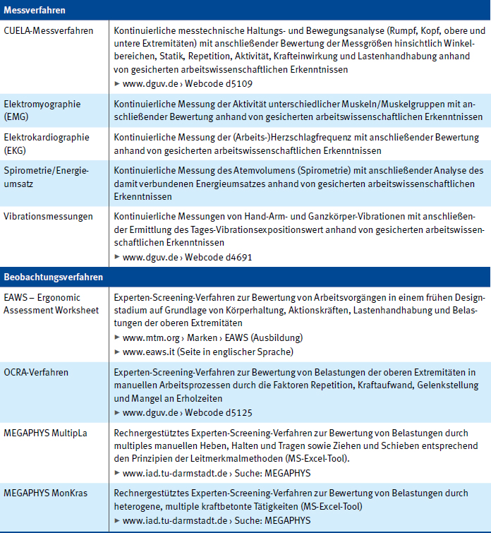 Beurteilungsverfahren für physische Belastungen nach "Stufe 3 – Unterstützung durch externe Spezialistinnen und Spezialisten"
