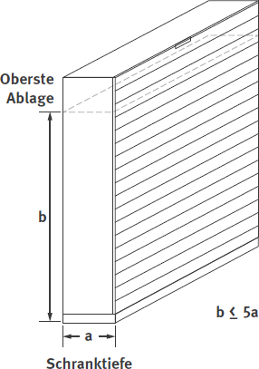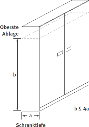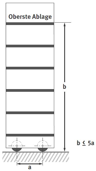 Die Standsicherheit ist im Allgemeinen gewährleistet, wenn die Höhe der obersten Ablage über der Standfläche höchstens das Fünffache des Radachsenabstandes beträgt.