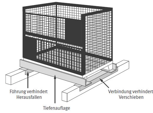 Auflagen zur Aufnahme der Ladeeinheiten müssen so ausgeführt und angeordnet sein, dass ihr Herabfallen verhindert wird; sie müssen die Ladeeinheiten sicher aufnehmen können (siehe auch Abbildung 6).