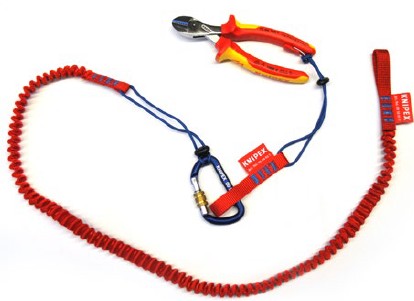 An hoch gelegenen Arbeitsplätzen, zum Beispiel während Reparaturarbeiten auf dem Bau, sind Werkzeuge gegen Absturz mit zum Beispiel Fangleinen zu sichern (Abbildung 5).