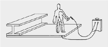 Vagabundierende Ströme können auftreten, wenn der Schweißstromrückleitungsanschluss am Werkstück fehlt oder der Stabelektrodenhalter oder Schweißbrenner nicht isoliert abgelegt werden.