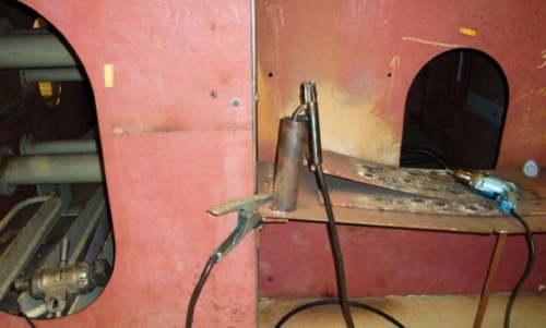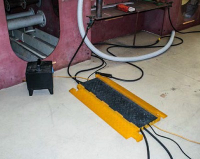 Abb. 3-4 Sicherung der Schweißleitung gegen Beschädigung beim Überfahren.