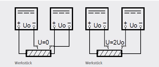 Summenspannung zwischen zwei Stabelektrodenhaltern bzw. Schweißbrennern