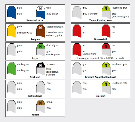 Abb. 7-2 Farbkennzeichnung von Gasflaschen