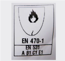 Abb. 8-8 Kennzeichnung schwer entflammbarer Kleidung