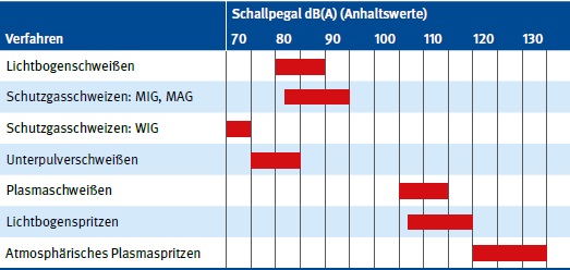 Bei Schweiß-, Schneid- und verwandten Verfahren ist die Einwirkung von gehörschädigendem Lärm gegeben (siehe Tabelle 6).