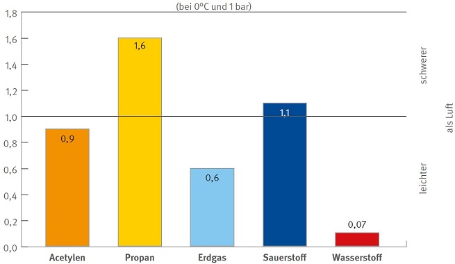 Das in der Autogentechnik unter anderem zum Brennschneiden, Anwärmen und Flammlöten benutzte Flüssiggas (Propan, Butan und deren Gemische sowie Propen) ist in gasförmigem Zustand wesentlich schwerer als Luft (Abb. 1).
